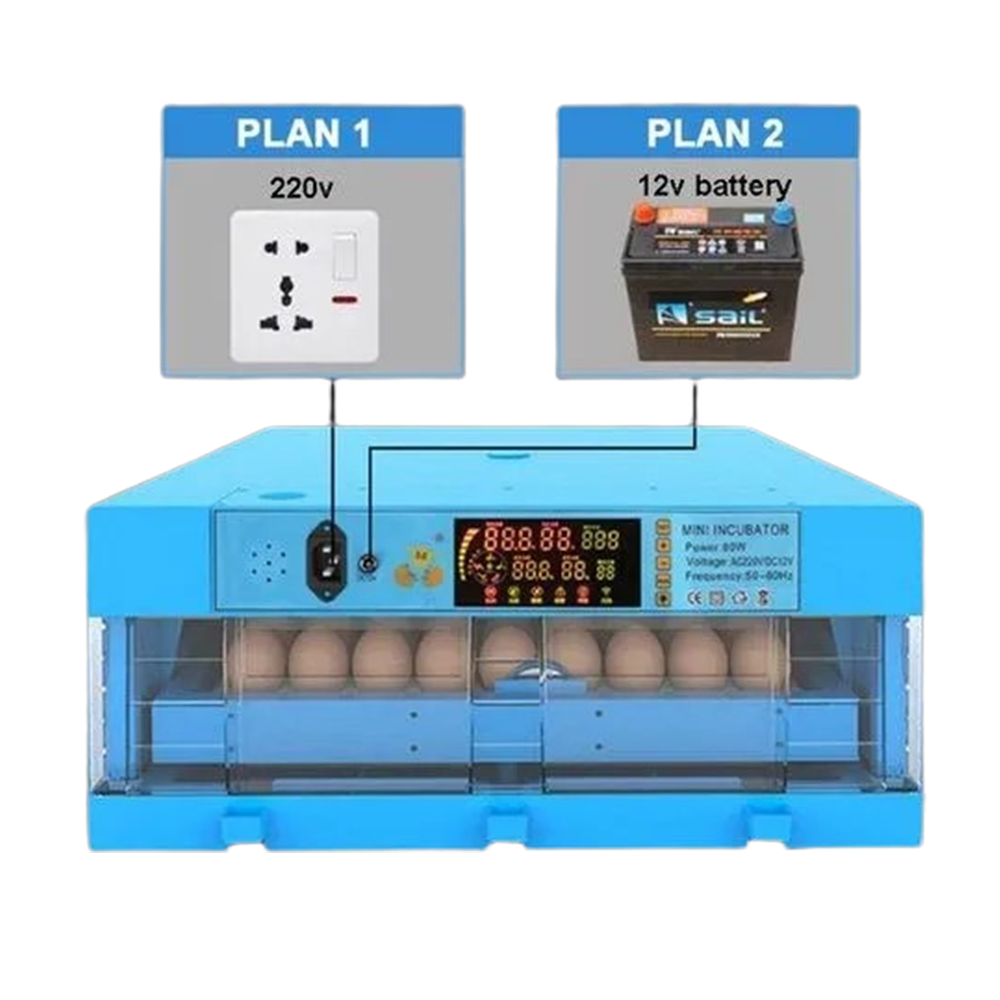 Fully 64 automatic egg incubator with both ac and dc inputs, it turns the eggs on its own every after two hours to ensure proper formation of the embryo, the plastic material is hard enough to not only ensure durability but also help preserve incubation condition for up to six hours in absence of electricity provided you do not open it.